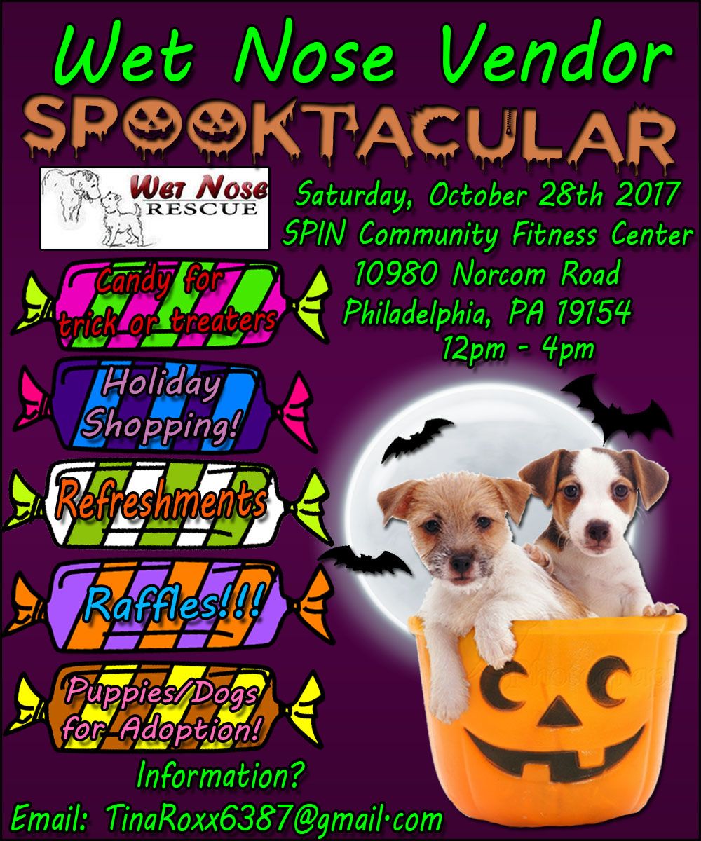 Come join Wet Nose Rescue, help us raise money! So many vendors to shop from especially for the holidays, candy for the trick or treaters, refreshments, and raffles!
